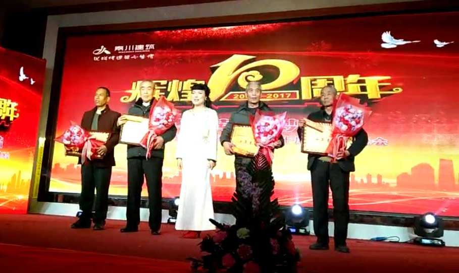 17:56慶典晚會(huì)拉開帷幕,一番精彩的燈光秀和開場(chǎng)舞后,全場(chǎng)觀眾凝神聚目觀看公司十年發(fā)展歷程記錄片,大家無(wú)不為之動(dòng)容,很多員工也紛紛落下了激動(dòng)的淚水。省建筑業(yè)協(xié)會(huì)徐會(huì)長(zhǎng)、原渭南技術(shù)學(xué)院黨委書記雷書記先后發(fā)表講話,表達(dá)了對(duì)公司的祝賀及美好祝愿。田銀川董事長(zhǎng)向支持、關(guān)心公司發(fā)展的省、市建設(shè)主管部門、協(xié)會(huì)、合作單位、員工家屬、各介朋友及員工們表示了深切的感謝,并代表秦川公司全體員工鄭重宣布:將開啟公司新的篇章,創(chuàng)造下一個(gè)更加輝煌的十年!讓員工們過上更加幸福小康的生活!晚會(huì)現(xiàn)場(chǎng),劉愛云總經(jīng)理為和公司一起成長(zhǎng)、做出貢獻(xiàn)的雷根緒、鈔永記、袁建忠、徐長(zhǎng)宏四名員工頒發(fā)了榮譽(yù)證書、獎(jiǎng)品。